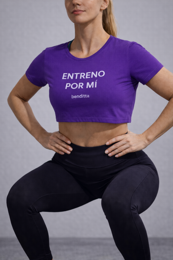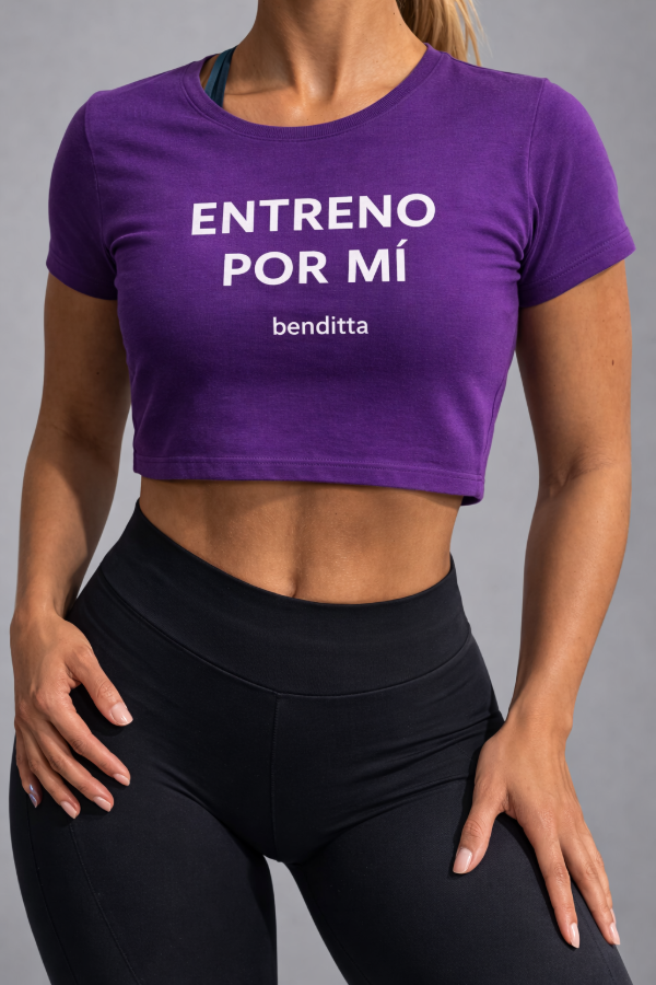 Remera deportiva pupera violeta ENTRENO POR MI. Benditta